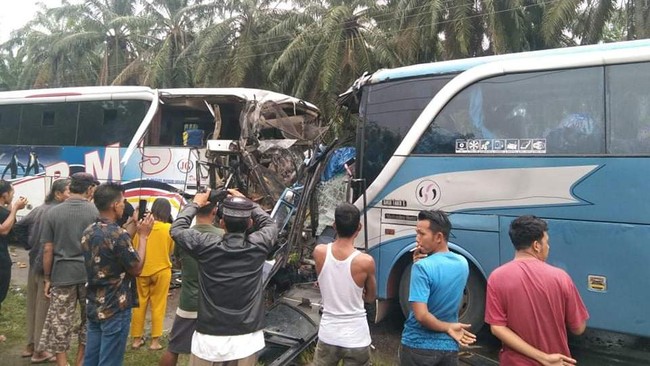 Tujuh orang meninggal dunia dan puluhan orang kritis akibat kecelakaan bus PMH dan PMS di Jalan Lintas Sumatera (Jalinsum) Labuhanbatu Selatan (Labusel). Warga sekitar lokasi kejadian, Joko Milano menceritakan kondisi pasca tabrakan yang terjadi Senin, dini hari tadi.