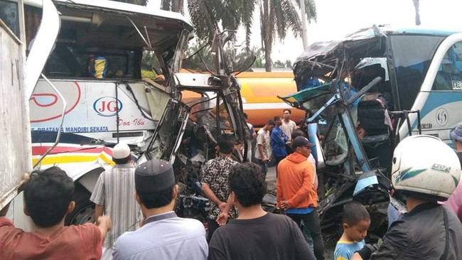 Tabrakan maut yang menewaskan tiga orang itu terjadi pada Senin dini hari tadi, sekitara pukul 03.00 WIB. Bus PMS yang terlibat dalam kecelakaan ini, datang dari arah Medan dengan tujuan Kerinci, Jambi. Sedangkan Bus PMH datang dari arah Riau menuju ke arah Medan.