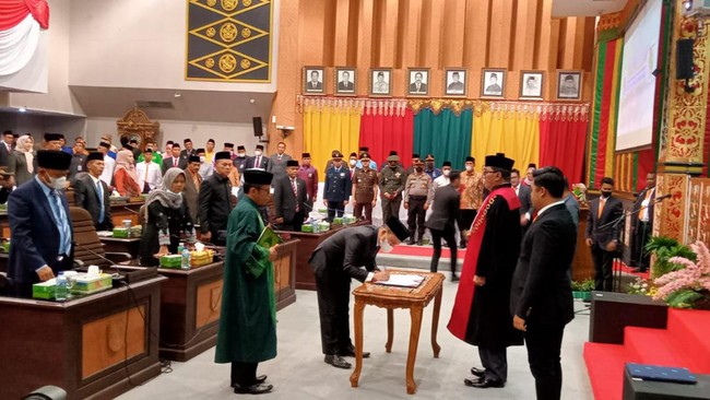 Rapat Paripurna DPRD Kota Pekanbaru itu dihadiri Pejabat (Pj) Walikota Pekanbaru Muflihun dan sejumlah pejabat penting di Pemko Pekanbaru. Termasuk turut hadir Hamdani yang sebelumnya adalah Ketua DPRD.