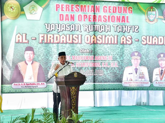 Acara peresmian Rumah Tahfiz bernama Al Firdausi Qasimi As Suadi ini sendiri dilakukan oleh Ketua Mahkamah Agung Republik Indonesia Syarifuddin. Hadir dalam acara Kapolda Sumut, Wakapolda Sumut, dan sejumlah pejabat di Mahkamah Agung.