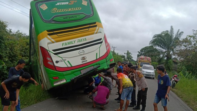 "Perlu saya sampaikan jika bus yang membawa calon jamaah haji kita ini tidak terbalik hanya terperosok keluar badan jalan yang mengakibatkan mobil bus bagian depan turun sebagian ke bawah badan jalan. Alhamdulilah tidak sampai terperosok keseluruhan ke dalam jurang," kata Kepala Kemenag Kabupaten Merangin Jambi, Marwan Hasan kepada detikSumut, Minggu (26/6/2022).