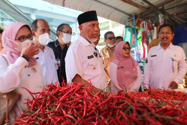 Gubernur Sumatera Barat (Sumbar) Buya Mahyeldi bersama sejumlah pejabat terkait memantau ketersediaan stok bahan pangan menjelang Hari Raya Iduladha 1443 H/2022. Pemantauan tersebut dilakukan di Pasar Raya Kota Padang.