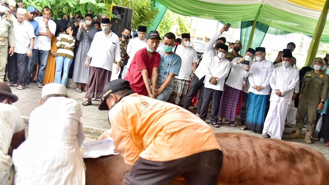 Dia menjelaskan daging sapi itu diserahkan per keluarga dengan berat daging sekitar 1,2 kg untuk setiap keluarganya. Hatta mengatakan pemotongan tersebut akan berlangsung sampai nanti sore. Kemudian, Hatta akan melakukan proses pembagian daging kurban kepada warga.