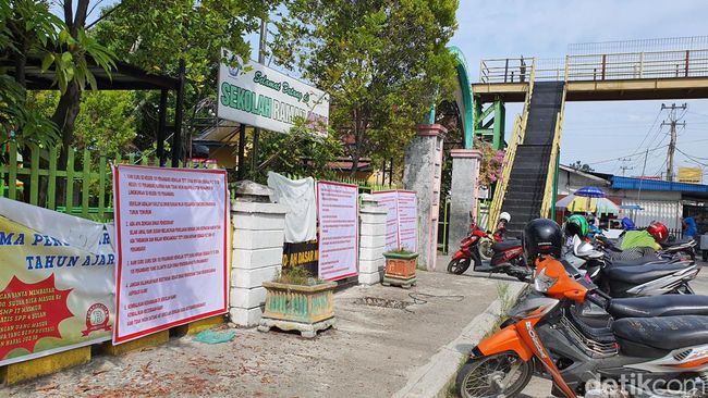 Pantauan detikSumut, sejumlah spanduk telah dibentangkan di pagar pintu masuk SD 105 Jalan HR Soebrantas. Setidaknya ada tujuh spanduk dibentangkan di pagar pintu masuk.