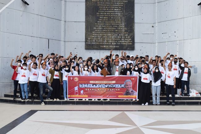 Ratusan anak muda, mahasiswa, dan milenial yang tergabung dalam Orang Muda Ganjar Sumatera Selatan (OMG Sumsel) mendeklarasikan dukungan terhadap Ganjar Pranowo untuk maju menjadi Presiden RI 2024. Aksi deklarasi tersebut dilakukan di Monumen Perjuangan Rakyat (Monpera) Jalan Merdeka, Palembang, Sumsel.