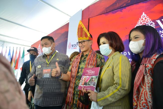Hadir juga dalam kegiatan ini Gubernur Sumut Edy Rahmayadi, Ny Nawal Edy Rahmayadi, Ny Devi Luhut Binsar Panjaitan, Pangdam I/BB Mayjen TNI Ahmad Daniel Chardin, Bupati Dairi, Dr Eddy Keleng Ate Berutu, Ny Sandiaga Uno, Presiden Kowani Titien Pamudji dan Chair of W20 Indonesia Handrianus Uli Silalahi serta para undangan lainnya.