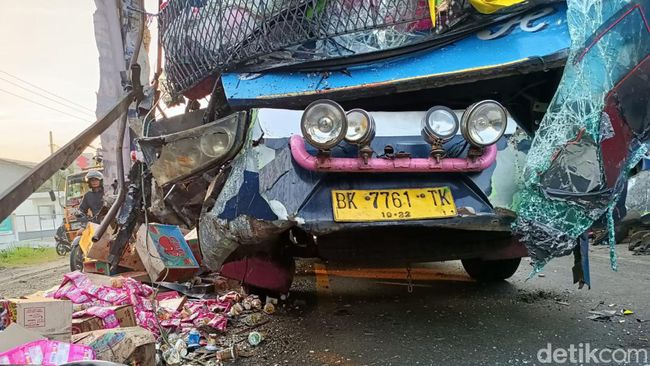 "Kronologinya bus PMH BK-7761-TK ini datang dari arah Rantauprapat menuju Medan dan saat yang bersamaan dari arah berlawanan datang mobil barang Truck BK 9889 GG. Diduga tidak hati-hati bagian depan bus menabrak sisi samping truk ," kata Rony.