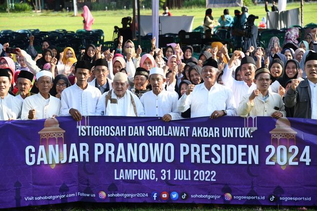 Relawan Sahabat Ganjar menggelar kegiatan istighosah dan salawat akbar bersama masyarakat di Kecamatan Mataram, Kabupaten Lampung Selatan. Kegiatan ini dilakukan sebagai perayaan Tahun Baru Islam 1 Muharram 1444 Hijriah.