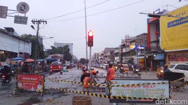 Jalan Arif Rahman Hakim tepatnya di depan Pajak (Pasar) Sukaramai yang sudah lama rusak parah kini sedang tahap perbaikan. Jalan ini terlihat akan dibeton.