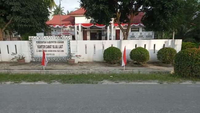 Pemasangan bendera merah putih di Kantor Camat Silau Laut, Kabupaten Asahan buat heboh karena dipasang degan tiang rendah dan hampir menyentuh tanah. Kini pemasangan bendera telah diperbaiki.