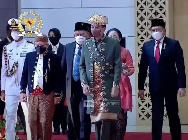 Presiden Jokowi sendiri hadir ke sidang tahunan MPR dengan mengenakan baju adat dari Bangka Belitung bernama Paksian.