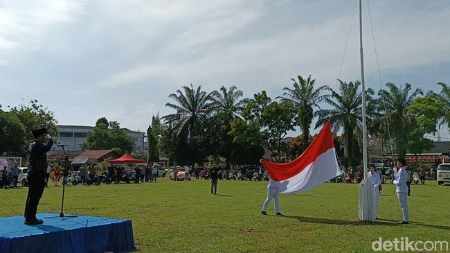 Komunitas scooter menggelar Upacara Peringatan HUT ke-77 RI di Lapangan Bola Komplek Tasbi, Jalan Taman Setia Budi Indah, Kota Medan. Juru Bicara Menteri Pertahanan RI Dahnil Anzar Simanjuntak bertindak sebagai inspektur upacara.