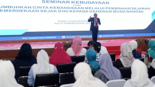 "Kalau anak saya tempo hari di sekolah pendidikan Singapura, itu yang diajarkan adalah, dia masih tiga tahun, tapi disuruh hitung satu, dua, tiga, one, two, three, begitu. Ada bahasa Mandarin lagi," kata Edy dalam sambutannya di acara yang digelar di Aula Tengku Rizal Nurdin, Medan, Rabu (24/8/2022).