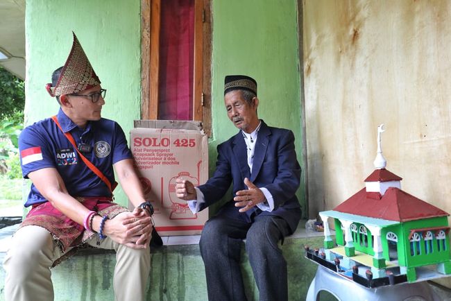 Di pertemuan itu, Sandiaga berbincang-bincang soal sejarah Pulau Pahawang yang menjadi tempat kelahiran Barmawi. Sandiaga juga memberikan alat semprot pestisida ke Barmawi yang sehari-hari biasa berkebun.