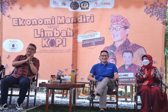 Menteri Pariwisata dan Ekonomi Kreatif (Menparekraf) Sandiaga Uno mendorong pelaku Usaha Mikro Kecil dan Menengah (UMKM) mengolah limbah kopi jadi kosmetik. Menurutnya, limbah kopi memiliki nilai ekonomis tinggi jika dimanfaatkan menjadi body scrub dan lotion.