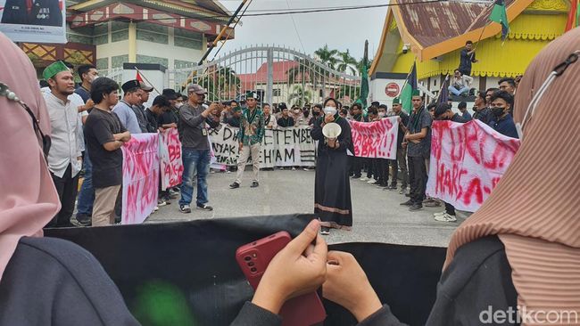 Pantauan detikSumut, mahasiswa mulai mendatangi Kantor DPRD Riau di Jalan Jenderal Sudirman di Pekanbaru sekitar pukul 14.30 WIB. Mahasiswa langsung berorasi di pintu keluar dengan dikawal polisi.