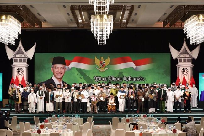 Sejumlah ulama dan tokoh adat di Sumatera Barat mendukung Ganjar Pranowo maju dalam pemilihan presiden (Pilpres) pada 2024 mendatang. Mereka menggelar deklarasi di Ballroom Hotel Santika, Padang, Sumatera Barat.