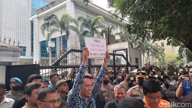 "PKS menolak kenaikan harga BBM," tertulis di dalam kertas yang diangkat Fraksi PKS tersebut di sela-sela unjuk rasa, Selasa (6/9/2022).