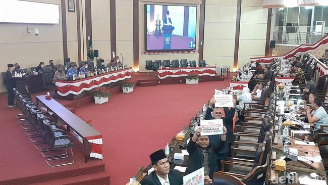 Berdasarkan pantauan detikSumut di areal ruang Paripurna DPRD Medan, Kamis (8/9/2022), setidaknya ada empat angggota F-PKS membentangkan kertas itu. Terdapat sejumlah tulisan penolakan di kertas tersebut.
