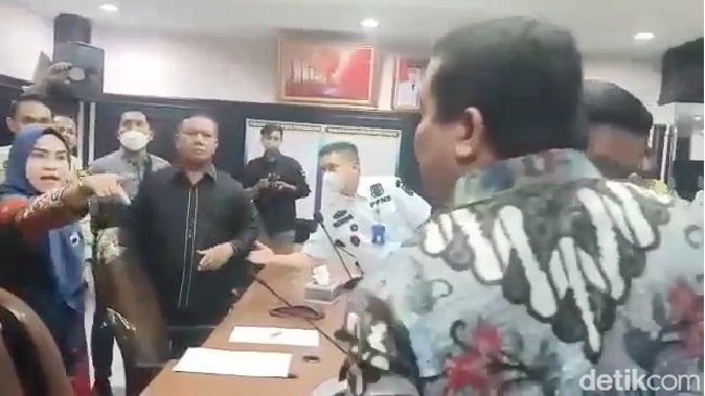 Tak hanya itu, sang pengacara yang pakai baju batik juga sempat dilerai beberapa pria. Sampai akhirnya keluar kalimat kotor hingga memicu kemarahan.