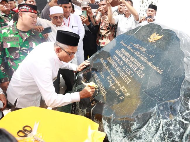 Peresmian masjid diawali dengan prosesi peusijuek (tepung tawari), pengguntingan pita serta penandatanganan batu prasasti. Usai diresmikan, masjid tersebut dipakai untuk melaksanakan salat Jumat perdana, Jumat (16/9/2022).