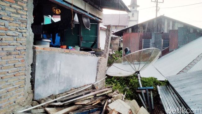 Rumah Martua juga ikut rusak. Dinding rumahnya retak sementara sebagian atapnya juga roboh.