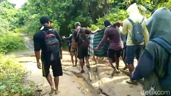 Bandar Lampung - Warga di Desa Way Hayu, Kecamatan Bengkunat, Kabupaten Pesisir Barat, Provinsi Lampung harus ditandu untuk bisa sampai ke puskesmas. Penyebabnya akses jalan yang rusak parah menuju puskesmas, butuh waktu lima jam untuk menandu wanita tersebut.
