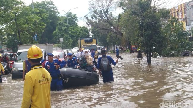 Bahkan, di perempatan Jalan Basuki Rahmat dan R Sukmato yang juga tergenang banjir beberapa siswa SMA yang hendak menuju ke sekolah terlihat dibantu melewati genangan banjir oleh anggota Polairud Polda Sumsel dengan perahu karet.