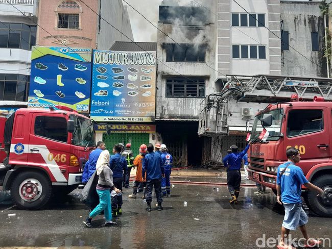 "Yang terbakar ini toko sepatu dan sendal, jadi di lantai satu penuh dengan dagangan, di lantai dua ada gudangnya, sepertinya di lantai tiga juga seperti itu. Jadi bahan yang terbakar itu terbuat dari karet, kulit, kertas kotak-kotak sepatu itu jadi mudah terbakar," imbuhnya.