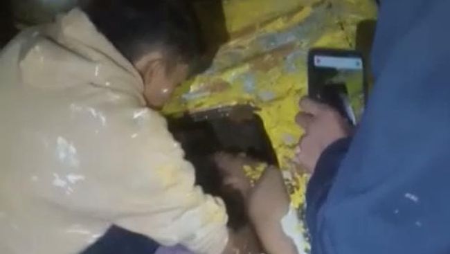 Dalam video yang beredar dilihat detikSumut, tampak sejumlah orang sedang mengevakuasi seorang pria yang diketahui sopir truk tersebut. Sang sopir tampak terjepit di truk yang dikendarainya itu.