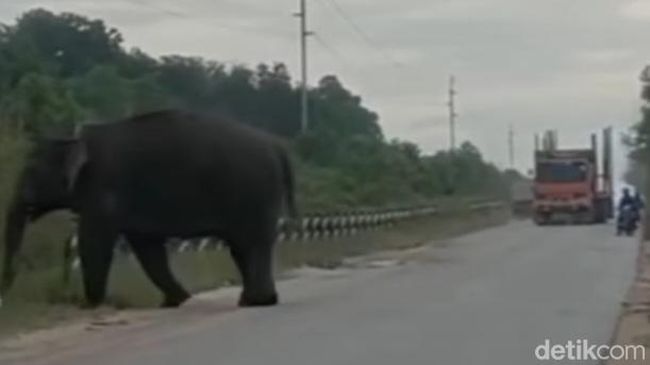 Seekor gajah sumatera jantan terekam kamera melintas di Jalan Rangau, Bengkalis, Riau. Gajah itu ternyata pernah viral karena melintasi Jalan Tol Pekanbaru-Dumai Februari 2022 lalu.
