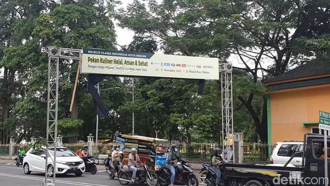 Pantauan detikSumut, Senin (28/11/2022) pukul 11.30 WIB, kerangka besi acara tersebut masih terpasang di tengah jalan.