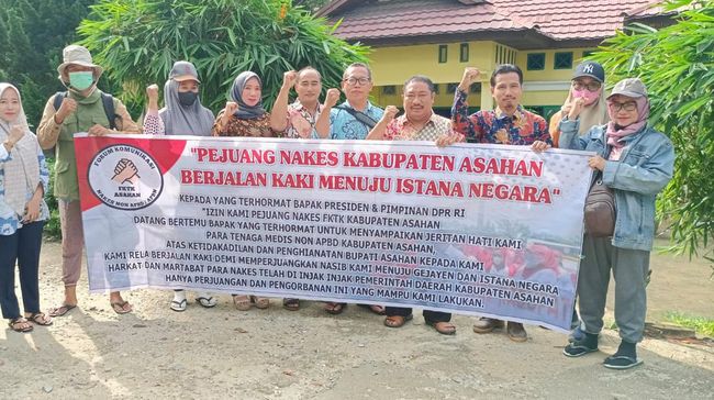 Sudah tujuh hari aksi jalan kaki dilakukan lima orang tenaga kesehatan (nakes) non ASN bersama dua orang aktivis dari Kabupaten Asahan, Sumatera Utara. Mereka melakukan aksi jalan kaki menuju Istana Negara Jakarta untuk menemui Presiden Joko Widodo.