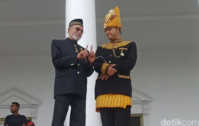 Pantauan detikSumut, Anies sempat dipesijuek (tepung tawar) oleh Wali Nanggroe Aceh Malik Mahmud Al-haytar di Meuligoe Wali Nanggroe yang terletak di Aceh Besar, Jumat (2/12/2022). Prosesi peusijuek berlangsung khitmad.