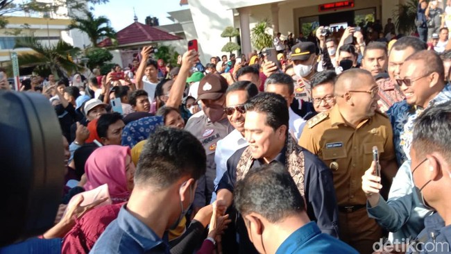 Menteri Negara BUMN, Erick Thohir berkunjung ke Sumatera Barat. Kehadirannya disambut massa yang menyemut di areal Bandara Internasional Minangkabau (BIM).