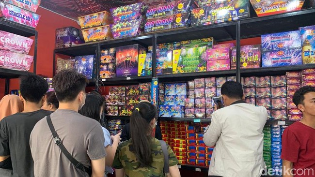 Berdasarkan pantauan detikSumut, Rabu (28/12/2022) para pembeli tampak memadati grosir kembang api RR Firework, Jalan Teuku Cik Ditiro Medan. Pegawai RR Firework juga sibuk mengemas belanjaan ke dalam kardus.