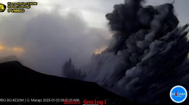 "Benar, telah terjadi erupsi pagi ini sekitar pukul 06.11 WIB, dengan tinggi kolom abu teramati sekitar 300 m di atas puncak," kata Ahmad Rifai, Petugas Pemantau Gunung Marapi saat dikonfirmasi detikSumut.