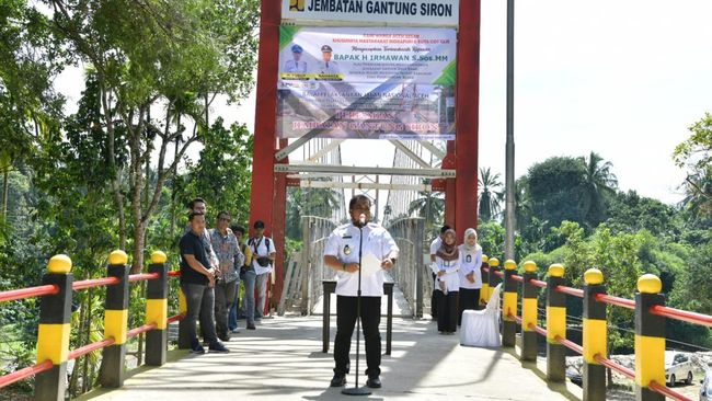 Dikutip dari situs Kementerian Pekerjaan Umum dan Perumahan Rakyat (PUPR), jembatan gantung Siron dibangun untuk menggantikan jembatan lama yang rusak akibat bencana banjir pada 2018 lalu.
