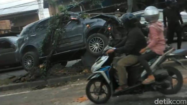 Video menyangkut peristiwa itu pun beredar di media sosial. Warga tampak ramai menyaksikan mobil tabrak tiang itu. Pengendara yang melintas juga turut berhenti melihat kondisi mobil yang ada.