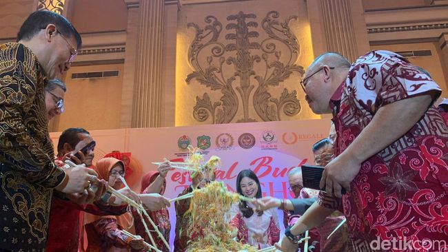 Wamenparekraf Angela Tanoesoedibjo begitu semangat saat meracik Yee Sang dalam acara Festival Budaya Tionghoa Sumut. Menu ini akrab disebut salad sayur khas Tionghoa saat perayaan Imlek.