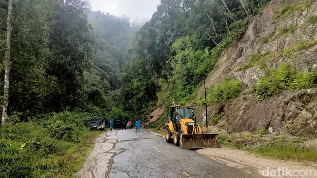 Ruas jalan nasional tersebut mengalami longsor disertai pohon tumbang sejak Minggu (29/1) petang, sekitar pukul 17.30 WIB. Longsor itu juga membuat jalan di sana macet hingga sulit dilalui.