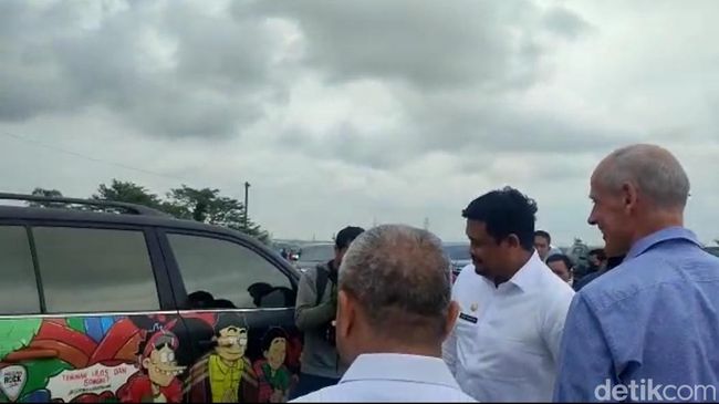 Setelah mengobrol sebentar, keduanya bersama rombongan terlihat berkeliling ke beberapa titik di TPA tersebut. Keduanya terlihat asyik mengobrol soal pengelolaan sampah di TPA Terjun itu.