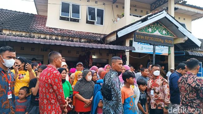 Berdasarkan pantauan, tak hanya emak-emak yang berkumpul namun juga puluhan anak sekolah yang berada di sekitar pasar.