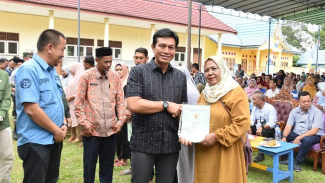 "Ya kita bantu untuk pembuatan sertifikat tanah ini, sehingga penyerahan sertifikat gratis ini supaya jelas atas hak dari tanah yang dimiliki masyarakat di sini," kata Bupati Batang Hari Jambi, M Fadhiel Arief, Sabtu (11/2/2023).