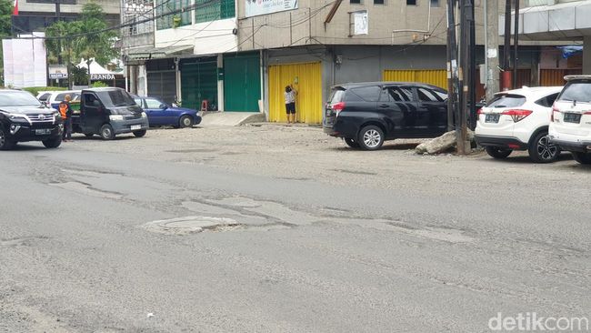Bagi detikers yang melintas dari arah Jalan Perintis Kemerdekaan melintasi Jalan Thamrin menuju Rumah Sakit Methodist tentu akan mendapati beberapa lubang di jalan. Paling ramai, lubang terlihat di sekitar Jalan Thamrin No 75.