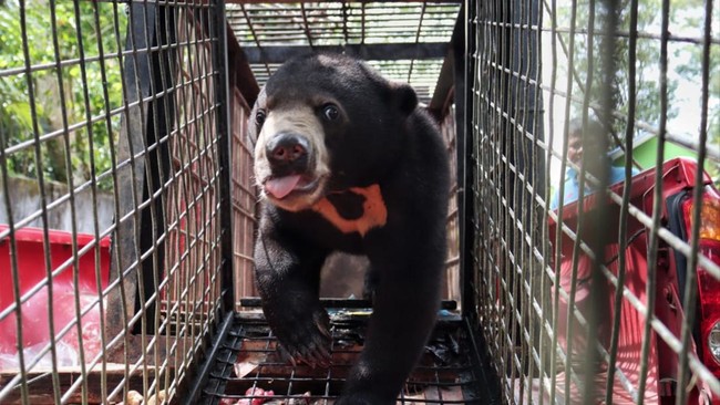 Penyelamatan terhadap satu ekor anak beruang madu jantan dilakukan petugas Balai BKSDA Riau. Beruang madu itu diselamatkan setelah ditangkap warga karena membuat resah.