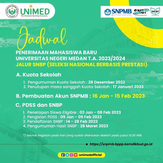 Berikut jadwal jalur SNBP dalam penerimaan mahasiswa baru di UNIMED.