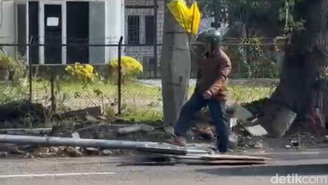 Dari video yang dilihat detikSumut, seorang pria yang menggunakan helm terlihat berusaha menggeser tiang rambu lalu lintas itu ke sisi jalan. Pria yang memakai jaket coklat tersebut terlihat menggeser tiang itu seorang diri.