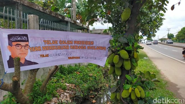 "Waspada!! Tolak Presiden yang Didukung Kelompok Intoleran. #tolakcapresintoleran #tolakcaprespenipu," demikian tulisan di spanduk itu.