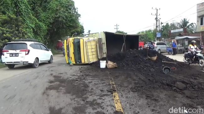Angkutan batu bara itu alami kecelakaan tunggal dini hari tadi, sekitar pukul 04.00 WIB. Kondisi angkutan batu bara yang terguling di jalan itu juga membuat kondisi jalan di kawasan Mendalo Muaro Jambi itu macet.